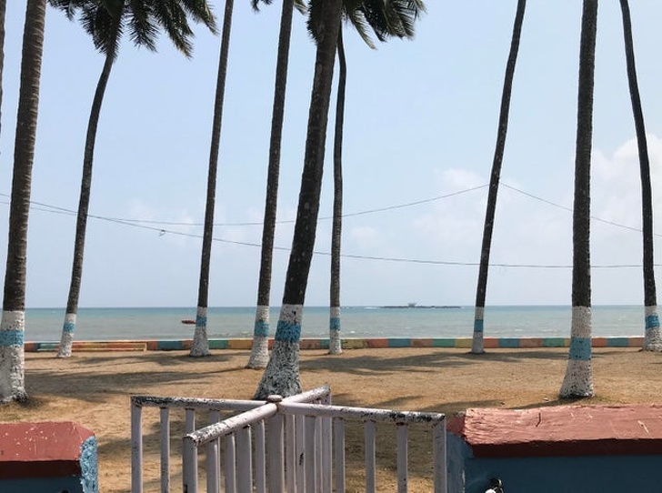 14. Пофарбовані стовбури пальм ідеально збігаються з лінією води