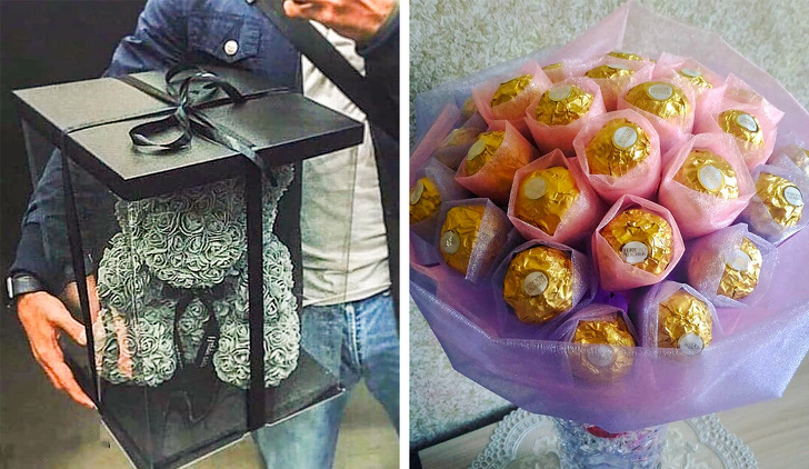 Особливо гігантський плюшевий ведмідь. Ну, можливо, в момент вручення такого подарунка дівчина буде захоплена і підкорена. Можливо, навіть зробить пару фото для инстаграма, щоб покрасуватися перед подружками. На цьому все: функціональна роль ведмедя вичерпана, і він буде просто пилитися, займаючи при цьому чимало простору в будинку.
