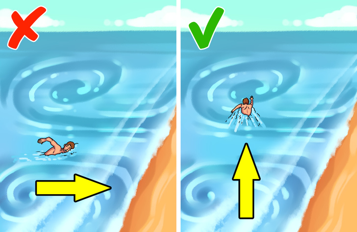 Випадково потрапивши в зворотна течія, марно плисти проти нього до берега — ви лише марно витрачаєте всі сили. Намагайтеся рухатися паралельно березі, поки не вийдете з потоку, а потім гребіть до суші.