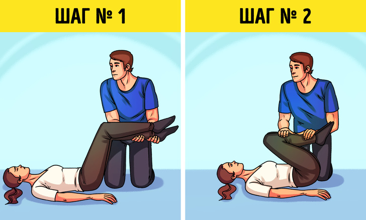 Якщо терміново потрібно привести в почуття людини, що втратив свідомість, слід обережно покласти його на спину і підтягнути коліна до грудей. Це дасть приплив крові до мозку, і потерпілий опритомніє. Але спочатку слід переконатися, що у нього немає травм ніг і тулуба, інакше така допомога може погіршити ситуацію.