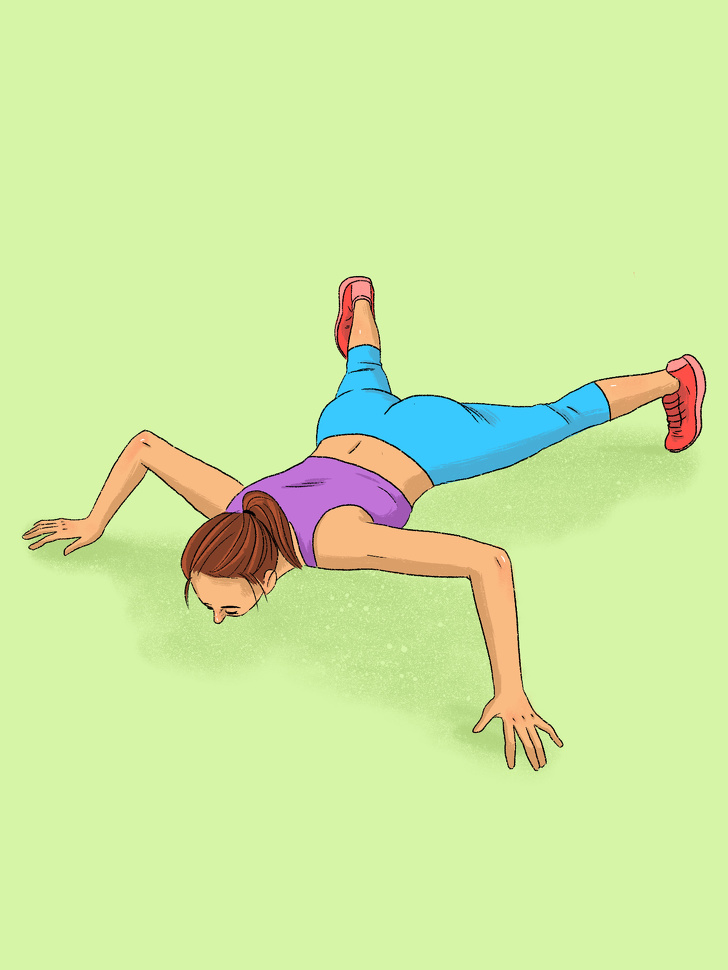 - Відштовхнутися носками так, щоб корпус посунувся вперед паралельно підлозі.