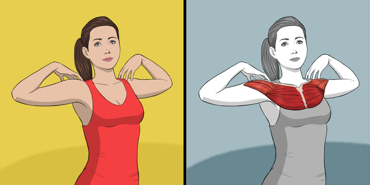 Розтяжка «Крила метелика» працює на найширший м'яз спини, а також великий грудний м'яз.