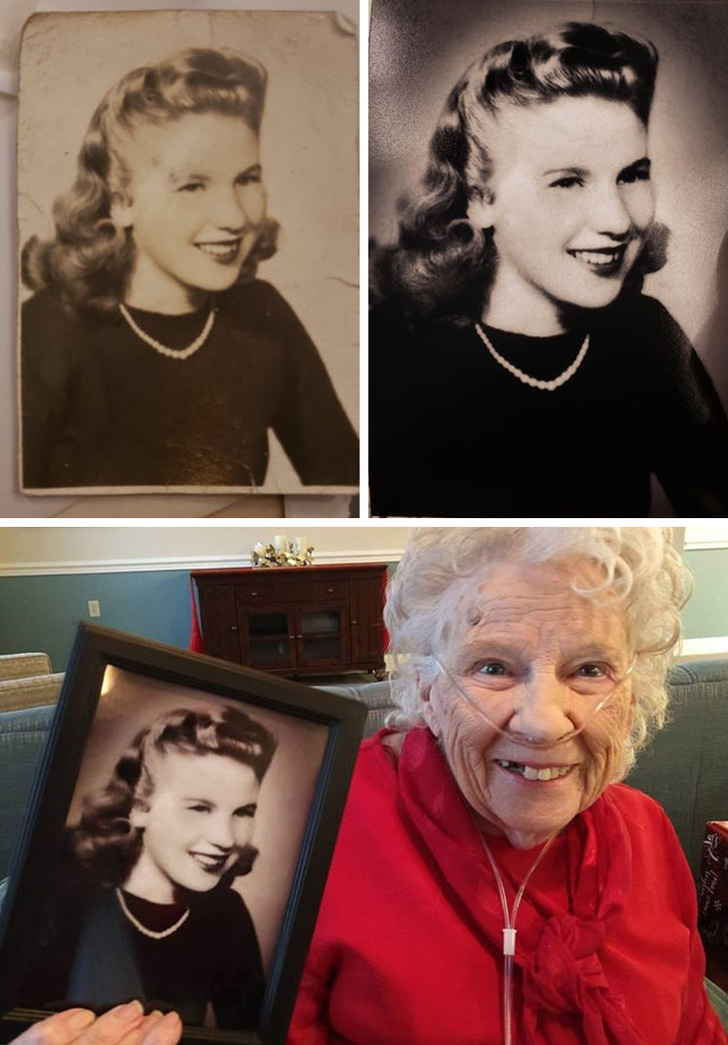 9. «„Почистили“ стару фотографію моєї бабусі. У цьому місяці їй виповнюється 90 років»