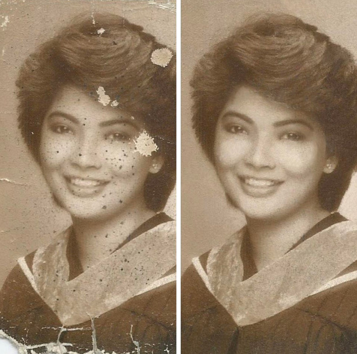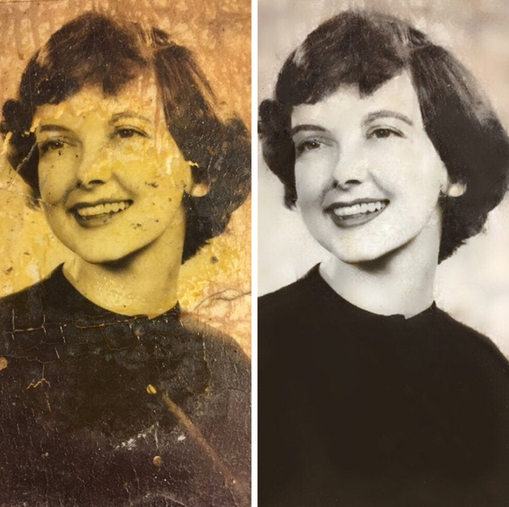15. «Нарешті знайшовся час, щоб відновити фотографію моєї матері на випускному вечорі в коледжі. Фото лежало в гаманці батька протягом останніх 30 років»