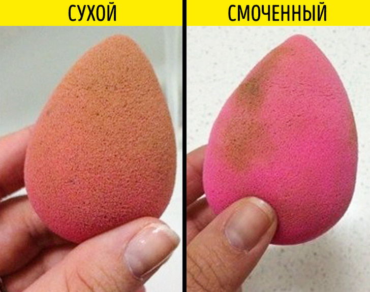 Більшість спонжей, особливо популярні сьогодні б'юті-блендери, вимагають змочування. В «сухому» стані вони вбирають в себе занадто багато косметичного засобу і не розподіляють його рівномірно.