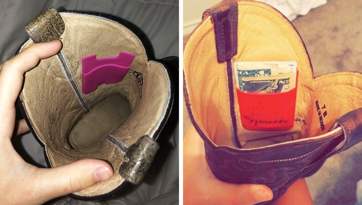 2. Щоб не залишитися без грошей на випадок крадіжки або втрати сумки / гаманця, надіньте високу взуття і приклейте всередині силіконовий кишеня для карток
