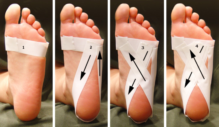 7. Послабити біль у п'яті при плантарном фасциите допомагає ця схема «бинтування» пластиром