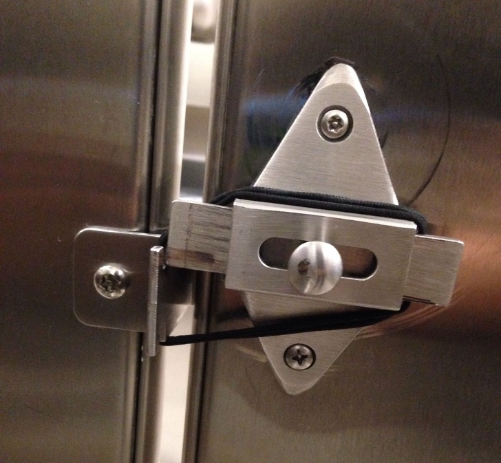 10. У громадському туалеті не закривається дверцята кабінки? Можна використовувати гумку для волосся, яку не шкода, і закріпити як на фото (в будь-якому разі краще, ніж сидіти зовсім незахищеним)