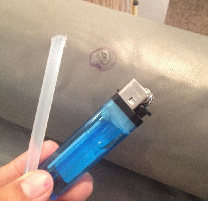 6. Дірка в надувному матраці? Знайдіть її, візьміть клейову паличку (які зазвичай використовують у термопистолетах), розплавте кінчик з допомогою запальнички і заклейте дірку. Клей засохне за секунду, і матрац перестане здуватися