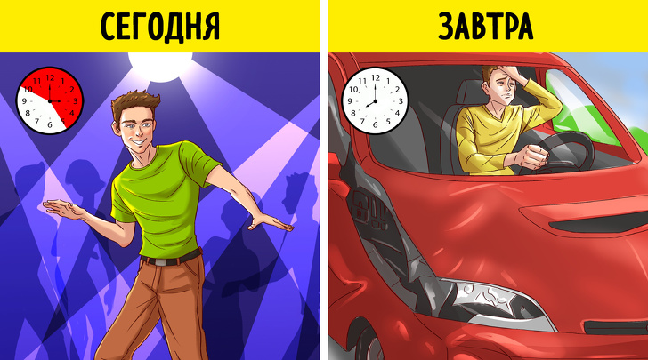 З іншого боку, цей експеримент — про далеку перспективу. А якщо думати не про «результаті» (ризик передчасної смерті), а про процес (якості життя тут і зараз)? При недосипу протягом робочого тижня можуть спостерігатися всі ті симптоми, про які ми говорили вище: проблеми з пам'яттю, низька працездатність, мінливий настрій і так далі. Та й як проходять вихідні? Довгий сон, а потім спроби поспіхом розібратися з усіма справами. І толком не залишається часу на відпочинок, спілкування з близькими, улюблене хобі.