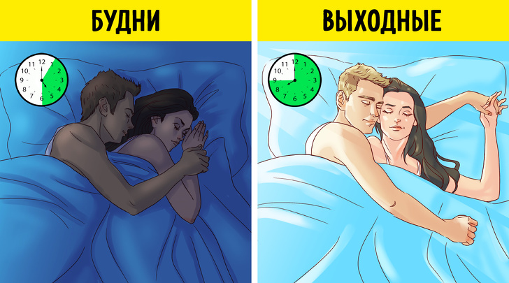 Так що краще постаратися розподілити сон більш або менш рівномірно по всіх днях тижня. Якщо це неможливо, то, звичайно, варто використовувати компенсаційні можливості сну вихідного дня — в будь-якому разі це краще, ніж недосипати щодня.