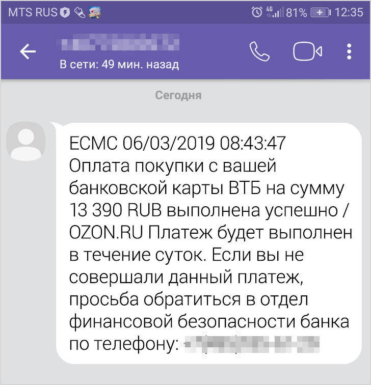 Всі ми регулярно отримуємо СМС від банків, і в більшості випадків це звіти про здійснені операції. Аферисти копіюють такі повідомлення і влаштовують свою розсилку. Причому часто роблять це через популярні месенджери (хоча банки відправляють звичайні СМС). Однак коли людина бачить на екрані велику суму, яка зараз нібито буде списана з його рахунку, він може розгубитися і не помітити " підступу. У повідомленні, як правило, вказують номер, за яким потрібно зателефонувати, щоб зберегти свої гроші. Щоправда, не уточнюють, що дзвінок на цей телефон — платний.