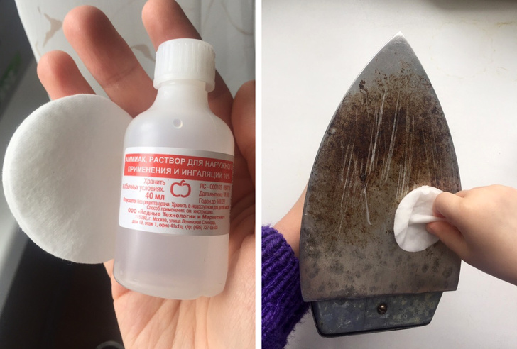 - Прибирає бруд з підошви праски. Якщо колись ви зіпсували праска і «приклеїли» до його підошві частинки тканини, скористайтесь розчином води і нашатирю. Змочіть в ньому ватний диск і обробіть поверхню. Якщо забруднення залишаються, спробуйте змішати 1 ч. л. нашатирю з 1 ч. л. оцту і знову обробити підошву.