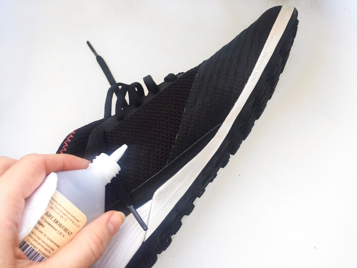 - Видалить запах із взуття. Щоб прибрати небажаний запах, змочіть ватяний диск в засобі і протріть їм взуття зсередини і зовні.