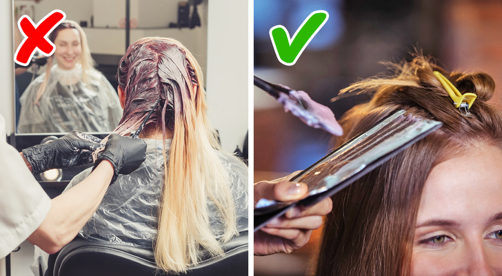 Перед тим як приступити до освітлення або фарбування, майстер повинен дізнатися, чим і скільки разів ви раніше фарбували волосся, і зробити тест-пасмо. Це потрібно для того, щоб зрозуміти, як саме фарба ляже і не виникне яких-небудь сюрпризів у вигляді темних плям або зеленого відтінку.