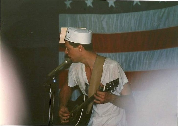 17. «Це я в 1988 році беру участь в шоу талантів на авіаносці „Мідвей“, поки він перетинає екватор в Індійському океані. Співав пісню про дівчину, виграв конкурс»