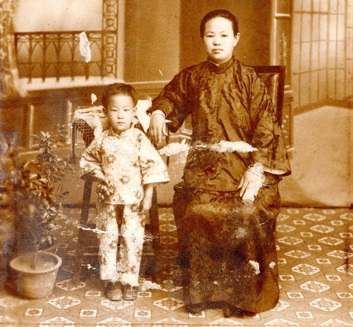 9. «Мої прапрабабуся і прабабуся в кінці 1920-х в Китаї. Вона була єдиною дитиною в сім'ї, і її стригли „під хлопчика“, щоб її поважали як майбутню главу сім'ї. Ще прабабуся розповіла, що відмовлялася позувати для цього знімка, поки її не підкупили виноградом»