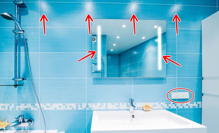 Жінки зрозуміють: коли мова йде про макіяж, всього одна лампа на стелі може звести старання до нуля. Але це ще півбіди: необхідність проводити маніпуляції при недостатньому освітленні дає додаткове навантаження на очі. Подбайте заздалегідь про невеликих світильниках над раковиною. Діодні лампи, які часто вбудовують в дзеркала, споживають значно менше електроенергії. Враховуючи, що для ранкового і вечірнього вмивання, як правило, цього достатньо, ви подбаєте не тільки про свій гаманець, але і про екологію.