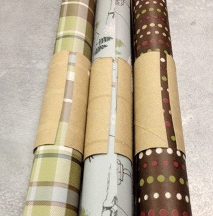 17. Залишилися рулони подарункового паперу збережуться в найкращому вигляді, якщо зафіксувати їх за допомогою непотрібних втулок або інших картонних туб
