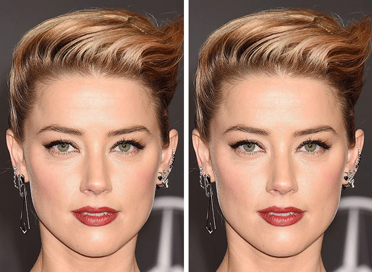 В першу чергу ми вирішили застосувати формулу до лиця цієї голлівудської красуні. Адже зчитається, що особа Ембер Херд найбільш наближене до ідеалу: саме такий ніс часто просять пацієнти клінік пластичної хірургії. Але тепер ми можемо бачити, що навіть майже еталонна зовнішність далека від так званого стандарту.