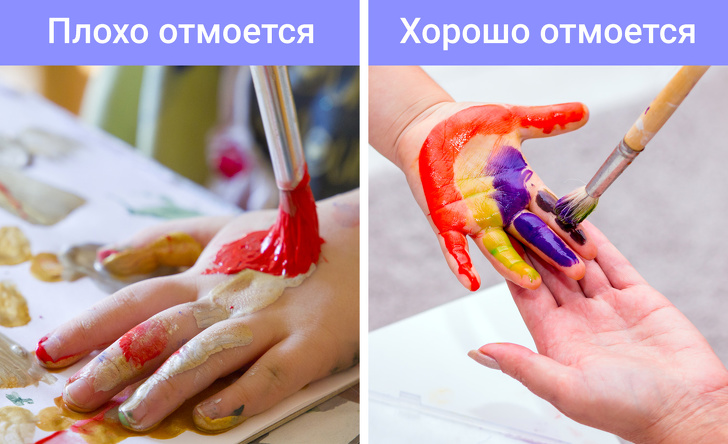 Будь-які в'їдливі фарби — гуаш, пальчикові, фломастери — легко відмиються, якщо перед сеансом малювання намазати долоньки дитини кремом.