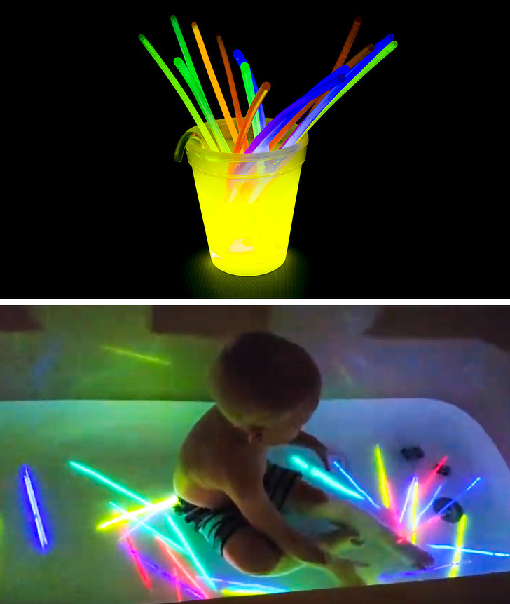 Малюк не великий любитель купатися? Киньте у воду безпечні, але дуже ефектні неонові палички або браслети. Але тоді з'явиться інша проблема: як витягнути дитину з ванни.
