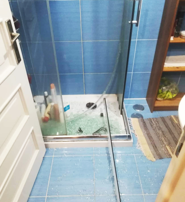 21. «Мій кіт примудрився розбити скляні двері в душовій кабіні»