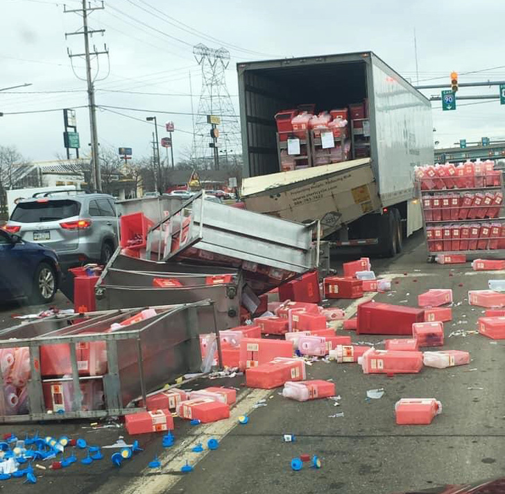 22. Водій цієї вантажівки втратив частину візків з лікарняними відходами