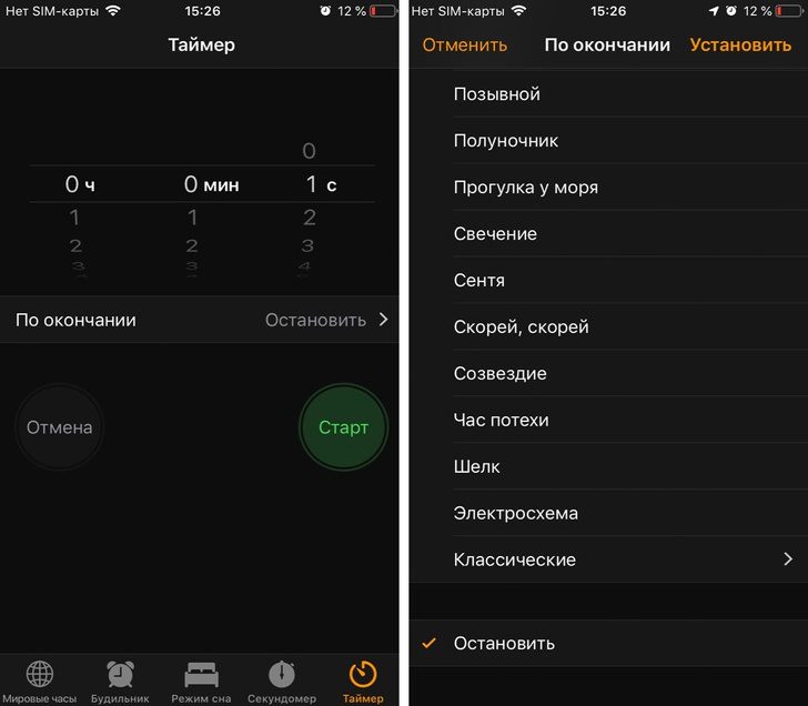 Щоб активувати функцію, запустіть додаток Годинник, відкрийте вкладку Таймер і натисніть опцію По закінченні. Внизу списку рингтонів ви знайдете рядок Зупинити. Встановіть необхідне вам час і запустіть таймер.