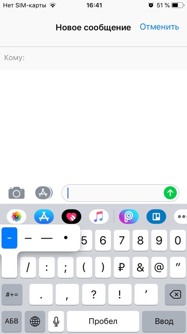 Щоб швидко вставити в дужки текст або цифри, натисніть кнопку 123, яка дозволяє перейти в режим цифр і символів, і виберіть потрібний символ, не відриваючи пальця. Щоб вставити символ в текст, просто відпустіть палець. Клавіатура автоматично перейде в режим букв.