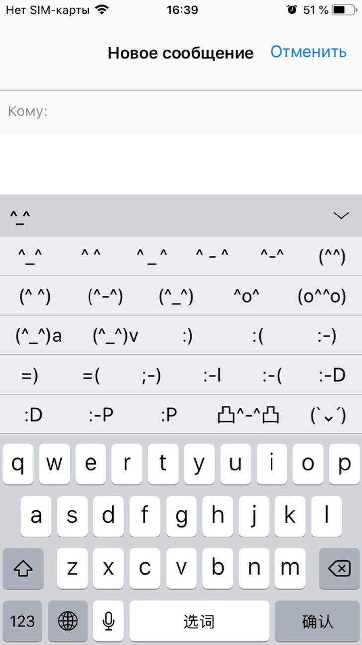 Якщо ви ностальгируете з колоритним текстовим смайликів юності (зразок @--->-) і не хочете обмежуватися emoji, перейдіть в пункт Настройки — Основні — Клавіатура — Нові клавіатури. Виберіть у переліку Китайська (спрощена) — QWERTY.