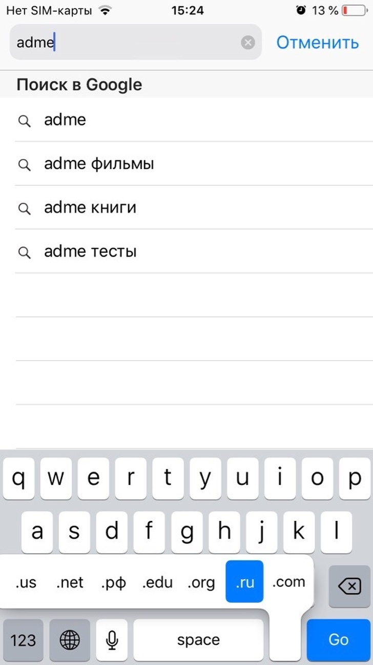 Щоб не набирати кожен раз вручну закінчення веб-адрес, досить затримати палець на кнопці, розташованій поруч з пробілом. Вона з'являється в процесі вводу адреси сайту. При тривалому натисканні ви побачите спливаюче вікно, де зможете обрати потрібний вам варіант: org, com, ua та ін.