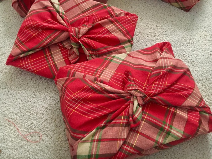 Упакувати подарунок теж можна за допомогою тканини, яка вже у вас є