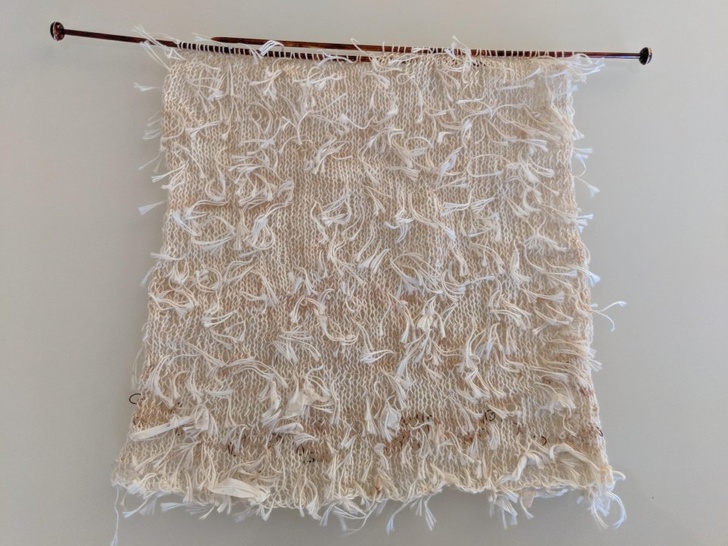 Одна талановита жінка зв'язала цілий шарф з ниточок від чайних пакетиків