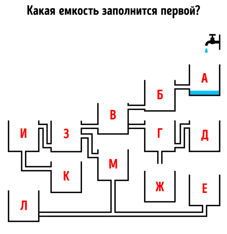 Кран наповнює 12 ємностей. У деяких з них одна труба, в інших — по 2.