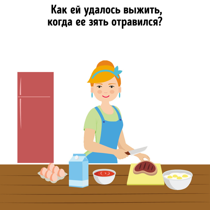 Джейн не любить свого зятя. Однак вона готує йому їжу кожен день. Одного разу вона приготувала шматок м'яса для них двох. Джейн розрізала м'ясо навпіл, і вони обидва з'їли свій шматок. Після цього зять почав синіти і раптово помер.