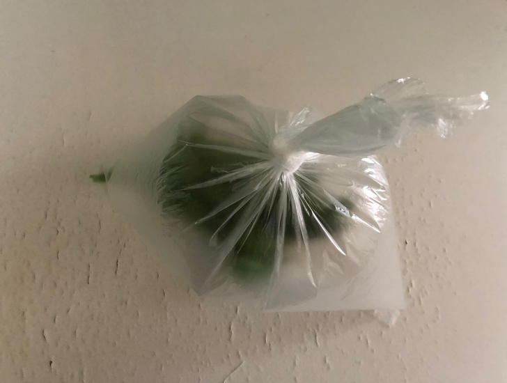 Вимийте і просушіть зелень. Покладіть її на дно целофанового пакета і наповніть його повітрям. Міцно зав'яжіть. Так зелень зможе довго залишатися свіжою.