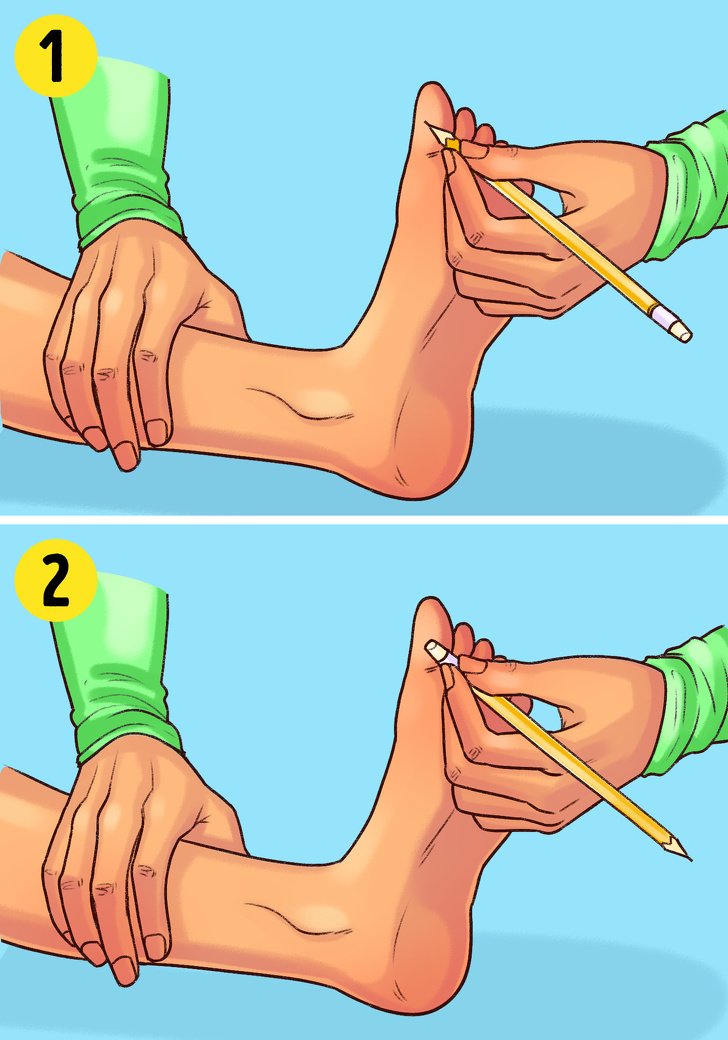 Щоб провести наступний тест, вам знадобиться допомога. Попросіть партнера взяти олівець з гумкою. Помічник повинен стосуватися вашої стопи і пальців гострим та тупим кінцем олівця по черзі. Чи зможете ви не дивлячись сказати, якою стороною олівця до вас торкалися?