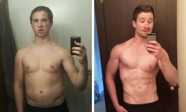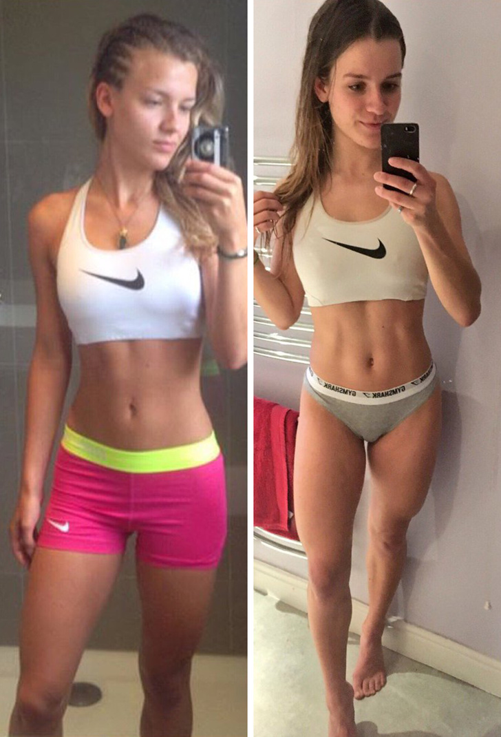 67 кг на лівій картинці і 66 — на правій. Результат роботи за 3 роки.