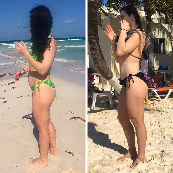 «Плюс 3 роки, 6 кг і нове бікіні. Я знайшла це фото в телефоні».