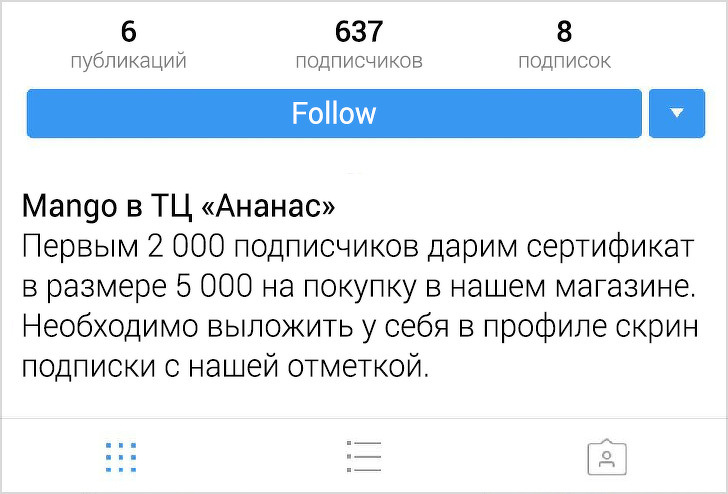 Відносно новий вид обману. Нібито відомий бренд одягу і косметики відкриває магазин в торговому центрі і заводить instagram-аккаунт. Перші кілька тисяч передплатників отримають подарунки та сертифікати на покупку. Необхідно лише підписатися на профіль і викласти скріншот на свою сторінку.