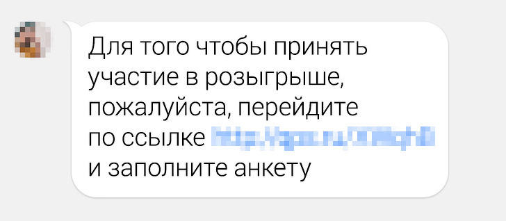 Деякі шахраї розуміють, що просити грошей напряму — небезпечно, тому вони вигадують нові способи відбирання грошей у населення. Наприклад, вас просять заповнити анкету учасника розіграшу або оцінити послугу і кидають посилання на опитування. Там вас попросять ввести логін і пароль від соціальних мереж, і таким чином шахраї отримують доступ до вашої сторінці.