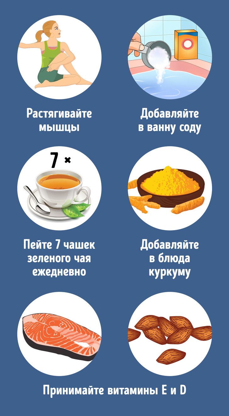 - Додавайте харчову соду у ванну. Завдяки своїй лужної природі це речовина захищає ваші м'язи і знімає біль і запалення в них.