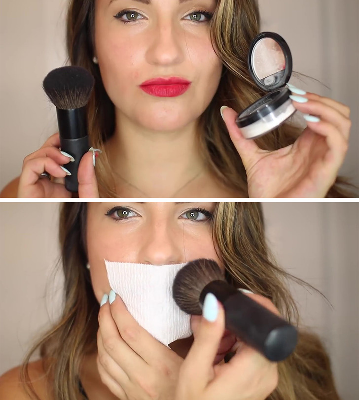 Помада протримається на губах довше, якщо через серветку або паперовий рушник нанести на неї пудру. Цей і ще кілька лайфхаков можна побачити в цьому відео.