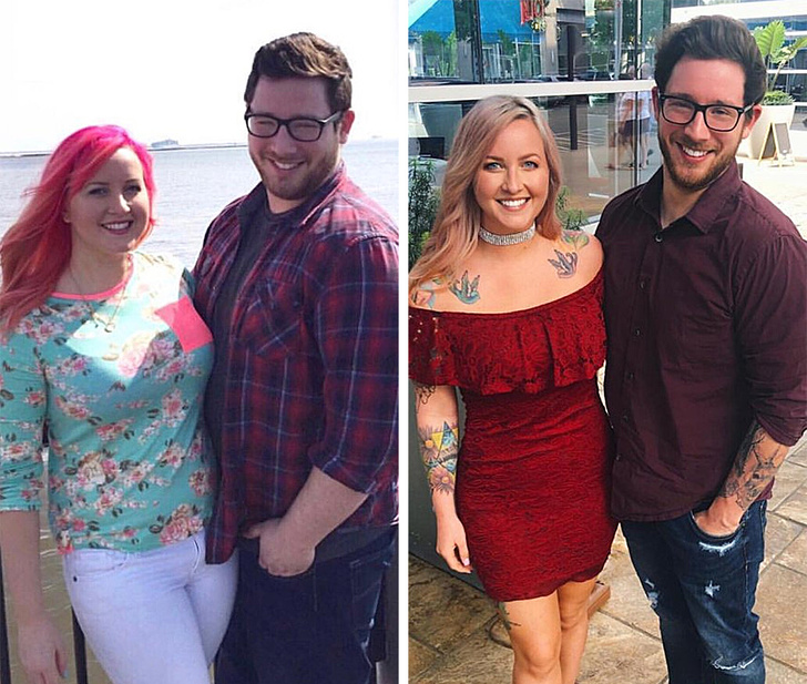14. «На першому фото ми ще зустрічаємося, а на другому — вже у шлюбі. Я схуд на 45 кг, а моя дружина — на 15 кг»