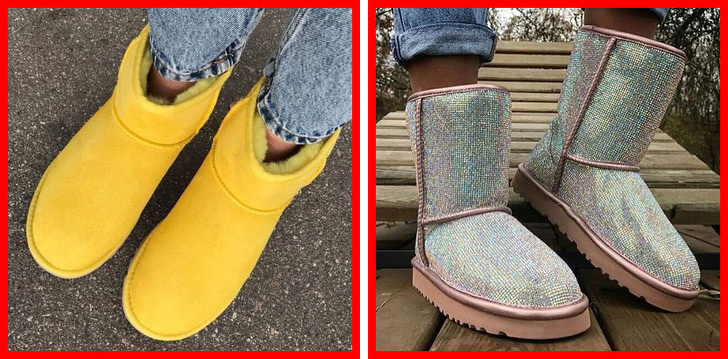 Уггі — найчастіший привід для звинувачення в поганому смаку. Критикуються і класичні варіанти, і кольорові. І особливо взуття з блискітками, стразами і іншими прикрасами. Уггі сьогодні має чи не кожна друга дівчина. Тому проявити з їх допомогою індивідуальність досить важко. Як б у них не було тепло і зручно, все дуже від них втомилися.