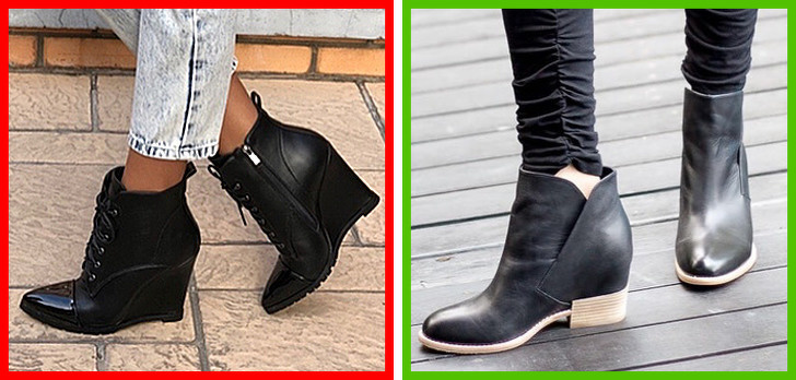 Згідно з недавнім опитуванням, чоловіки назвали верхи несмаку саме взуття на танкетці. Особливо їм не подобається, як виглядає хода жінки в цьому взутті. Спробуйте заради експерименту змінити модель на пару з стійким каблуком або на елегантні туфлі на плоскій підошві.