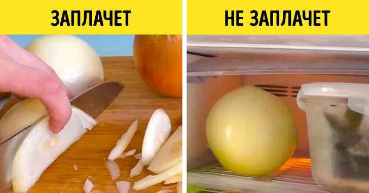 Хто з нас не плакав, нарізаючи цибулю для салату чи супу? Щоб уберегти очі, зазвичай пропонується змочувати ніж холодною водою. Але є й інший, більш дієвий спосіб. Очищену від лушпиння цибулину потрібно 10 хвилин потримати в морозилці. Це дійсно працює, і плакати під час різання лука ви точно не будете.