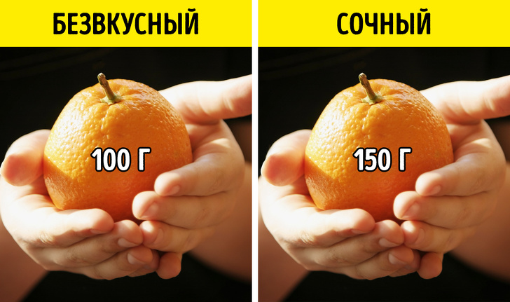 Привабливий на перший погляд плід може виявитися сухим і несмачним. Соковитий цитрус вибрати досить просто: потрібно просто зважити його. У легкому плоді, швидше за все, мало соку, і він буде за смаком схожий на тирсу. Краще ще покопатися у коробці і вибрати апельсини або грейпфрути, які виявляться найтяжчими порівняно з плодами схожого розміру. Вони і будуть найбільш смачними і соковитими.