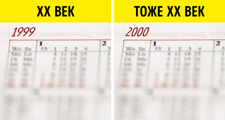 Ще одне популярне оману — те, що XXI століття почався в 2000 році. Згідно з григоріанським календарем, нова ера почалася в 1 році, і ніякого нульового року, так званої " точки відліку, не було. А значить, XX століття тривав з 1901 по 2000 рік включно. Відповідно, XXI століття почався у 2001 році.
